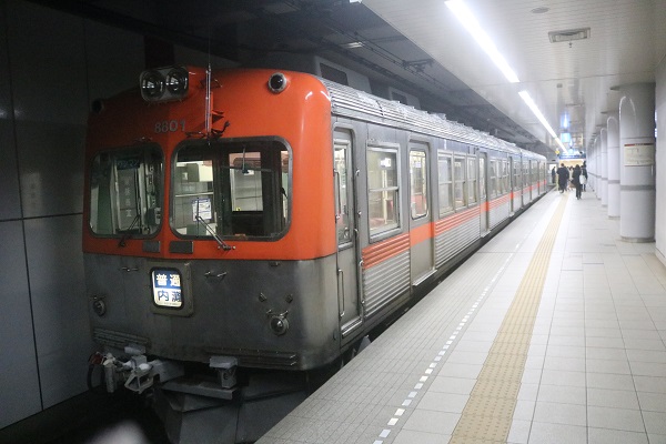 京王井の頭線で活躍していた3000系を譲り受けた車両です。現在では2両×2編成が浅野川線で活躍しています。現在、03系への置き換えが進行中ですが、全5編成中4編成が出揃っており、残る1編成の導入の完了次第、導入予定の03系が出揃うことになります。そうなると、8000系が2023年中に全廃となる可能性も高そうです。2024年までギリギリ持つか持たないか、微妙なラインだと思いますが、どちらにせよ先は短いでしょう。