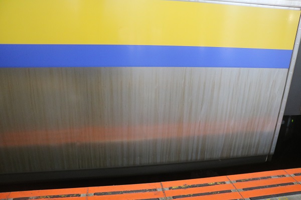 この編成はどうやら1号車以外の車両が洗浄されている編成のようで、綺麗な車体と汚い車両の差がはっきりと分かるような編成になっていましたので、その差が分かる写真を貼っていきたいと思います。洗浄されている車両と汚い車両の差がこんな感じです。