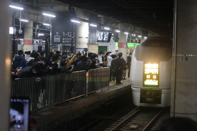先ほど、21:00に上野駅を651系スワローあかぎ91号ラストランが出発しました!