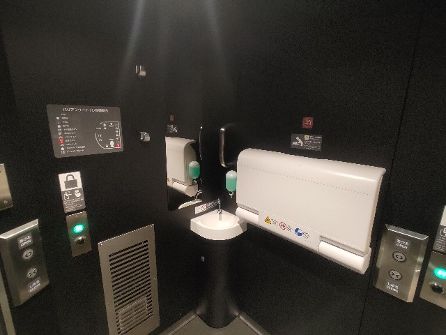 トイレ付近はこんな感じ。黒で統一されていて、おしゃれな内装ですね。