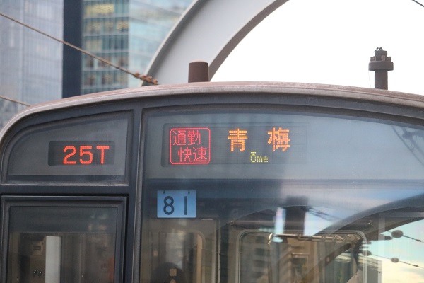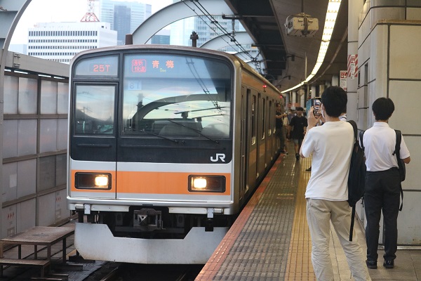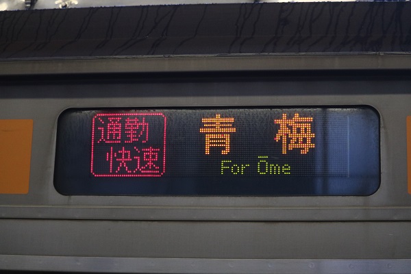 その後、97Tから運用が変更され、15H運用に入っているのが目撃されています。12時過ぎごろにはさらに運用変更がかかり、25T運用に変更になりました。25T運用は運用の最後が豊田入庫であり、209系の運用可能区間しか走行しないため、そのまま一日流れると見られていました。そのまま25Tが継続されれば、25T運用には通勤快速運用が含まれるため、その日は通勤快速青梅行に二度充当されることになります。私も充当を期待していたところ、そのまま流れ、充当されました!