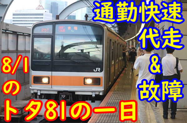 昨日(8/1)、トタ81編成が話題になりました。普段は97T又は99Tの運用に入る209系が別運用を代走し、さらに代走途中に故障が発生したということです。代走中に故障というなかなかない展開となり、トタ81編成にとっては騒がしい一日だったのではないかと思います。今回はそんなトタ81編成の昨日の動きを簡単に振り返ってみたいと思います。