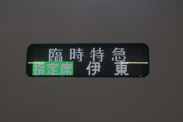 特急単体幕なのかな~と思っていましたが、なんとちゃんとした表示を準備していたようです。表示は「臨時特急 伊東 指定席」でした。こんな幕が登録されていたのですね。びっくりしました。