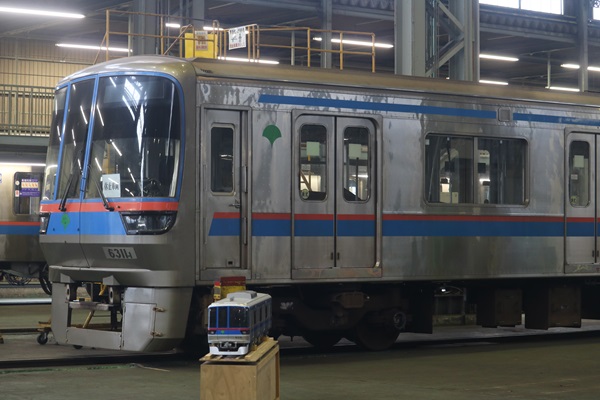 今回はイベントで見ることが出来た6300形初期車の現況を紹介したいと思います。昨年の10月に全車両運用を離脱した6300形の6301F~6313Fですが、現在までに6302Fと6311F、6312Fを除く10編成が既に基地から搬出され、解体されています。そんな中、6302Fと6311F、6312Fのみは今日まで残留しています。今回は残る編成のうち、6302Fと6311Fの様子を見ることができました。まずはイベントで展示されていた6311Fです。