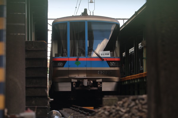 こちらです。6302F、昨年に脱線復旧に使われたようで、その際にスカートが取り外されました。スカートが取り外されている姿は始めてみましたね。1次車は元からミニスカでしたから、外されていてもそんなに違和感ないのかなぁ…なんて思ったりもします(笑)