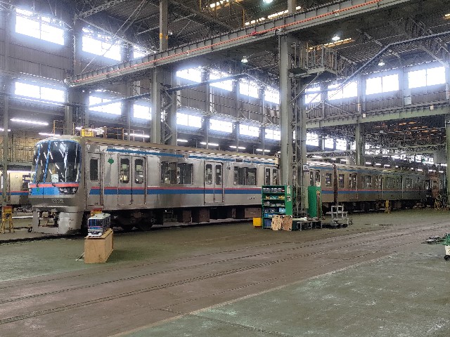 6311Fは工場内に留置されていました。この場所に留置されていることからもお察しの通り、この車両は既に編成が分割され、部品取りが行われているような状態。エアコンも撤去されており、搬出が間近に迫っているというような状態でした。もう自走することは無いでしょうね。本当に最後の姿を展示してくれたようです。